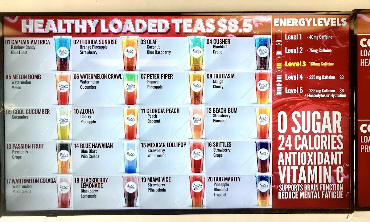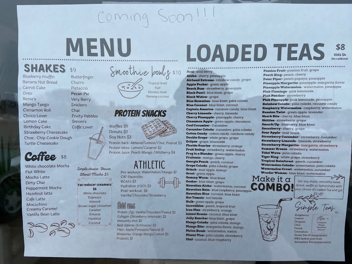 Their Healthy Loaded Teas add a refreshing twist, with options like Captain America and Melon Bomb, or the zesty Florida Sunrise. For a fun and colorful choice, try the Watermelon Crawl or the playful Olaf. The Shakes menu brings even more variety with indulgent flavors such as Blueberry Muffin, Banana Nut Bread, Carrot CakeOreo, and Reese's.